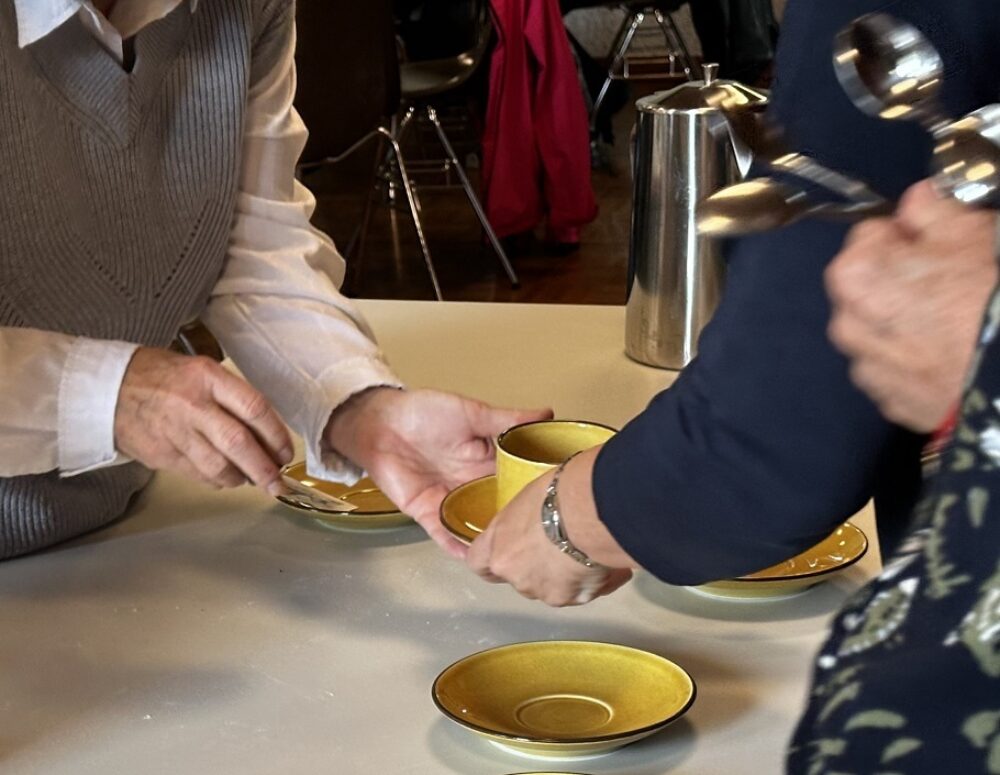 Im Anschluss an den Vortrag hatten die Teilnehmenden die Möglichkeit Fragen zu stellen. Danach gab es ein feines Zvieri mit selbstgebackenen Kuchen, vorbereitet und serviert durch engagierte Helferinnen de Netzwerks «mitenand-fürenand» aus Meikirch. Die wunderschöne Blumendekoration auf den Tischen wurde vielfach gelobt.