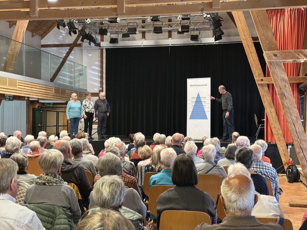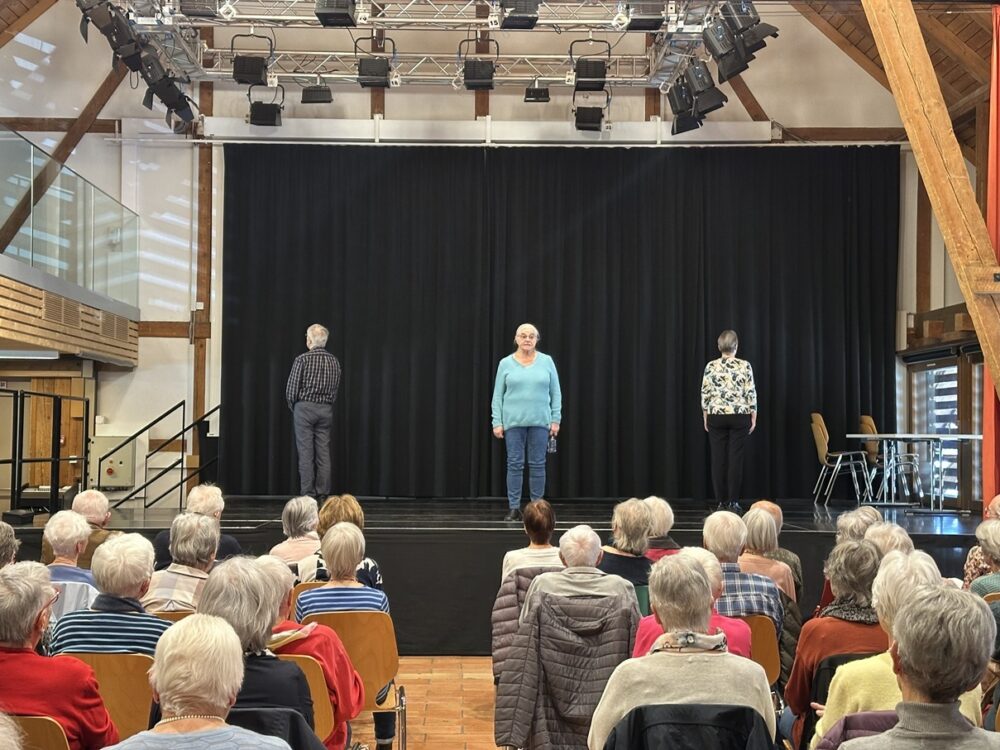 Der Anlass war Teil der regionalen Veranstaltungsreihe «Gesundheit im Alter». Seniorenschauspielerinnen und Seniorenschauspieler des Theaterensembles Obertor führten mit einem Mundartstück in das Thema ein. Danach wurden Erfahrungen und Ideen ausgetauscht.