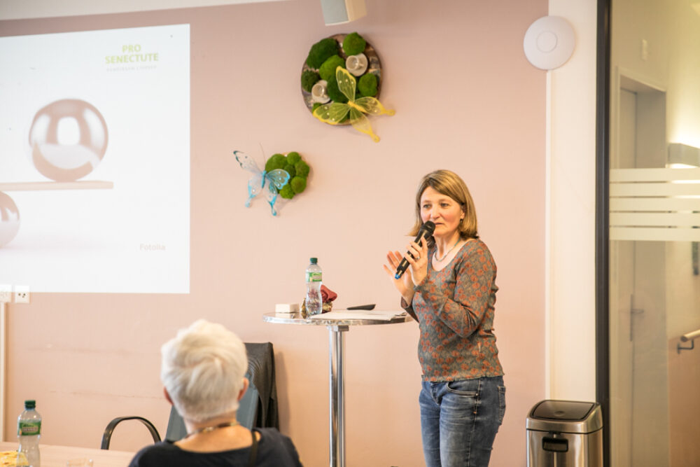 In ihrem einfühlsamen und praxisnahen Referat zeigte Anna Hirsbrunner von Pro Senectute Kanton Bern auf, welchen Herausforderungen viele ältere Menschen begegnen – seien es Verluste geliebter Menschen, die Belastung durch die Pflege von Angehörigen oder frühere, noch nicht verarbeitete Lebenserfahrungen.